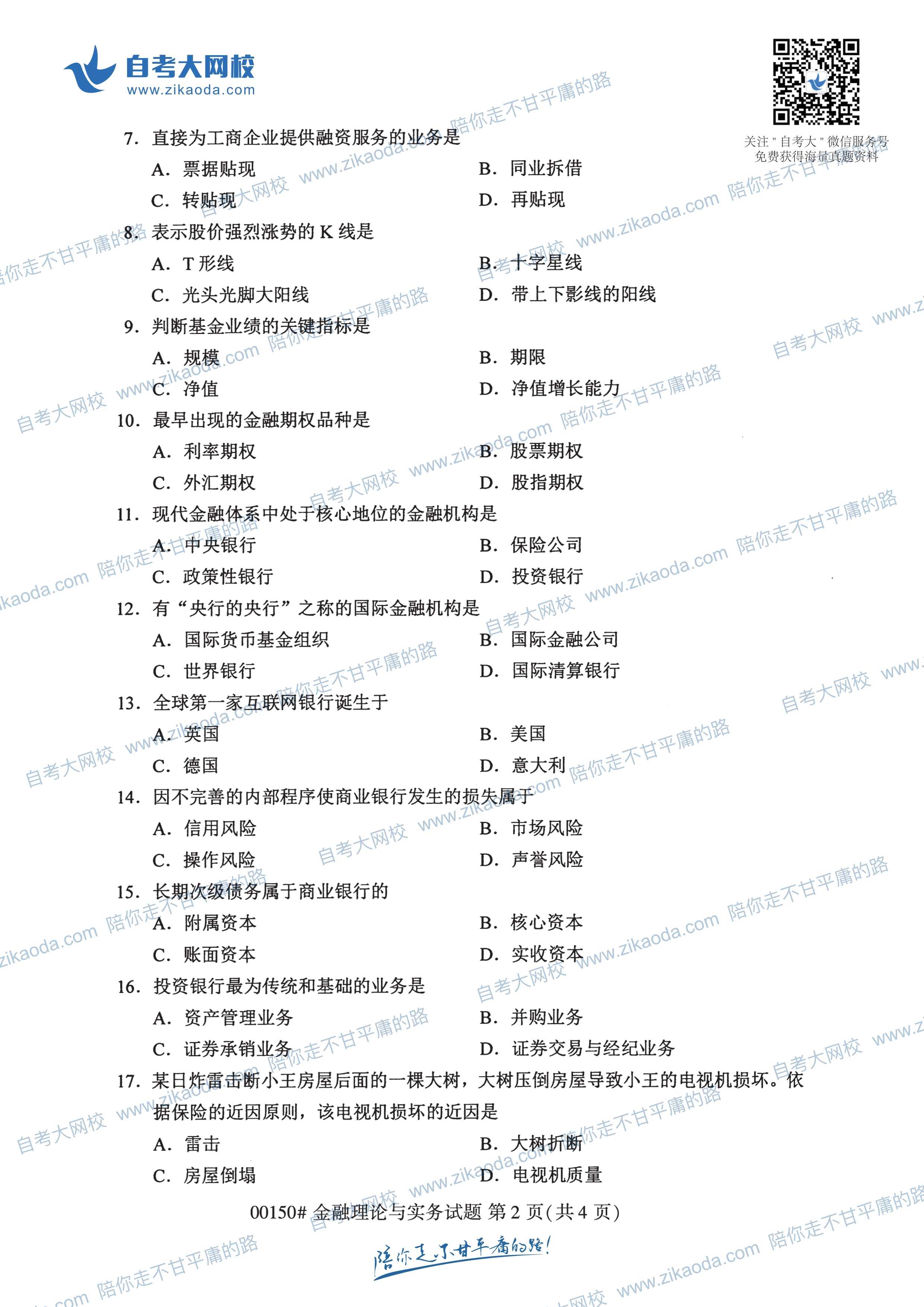 以上是關(guān)于全國2020年8月自考00150金融理論與實務(wù)真題試卷已公布的相關(guān)信息,請自考生們認(rèn)真查看,如果你想獲取最新的江蘇自考新聞或者江蘇自考問題答疑,可以掃描江蘇自考網(wǎng)公眾號二維碼,我們會最第一時間內(nèi)為你解答。
