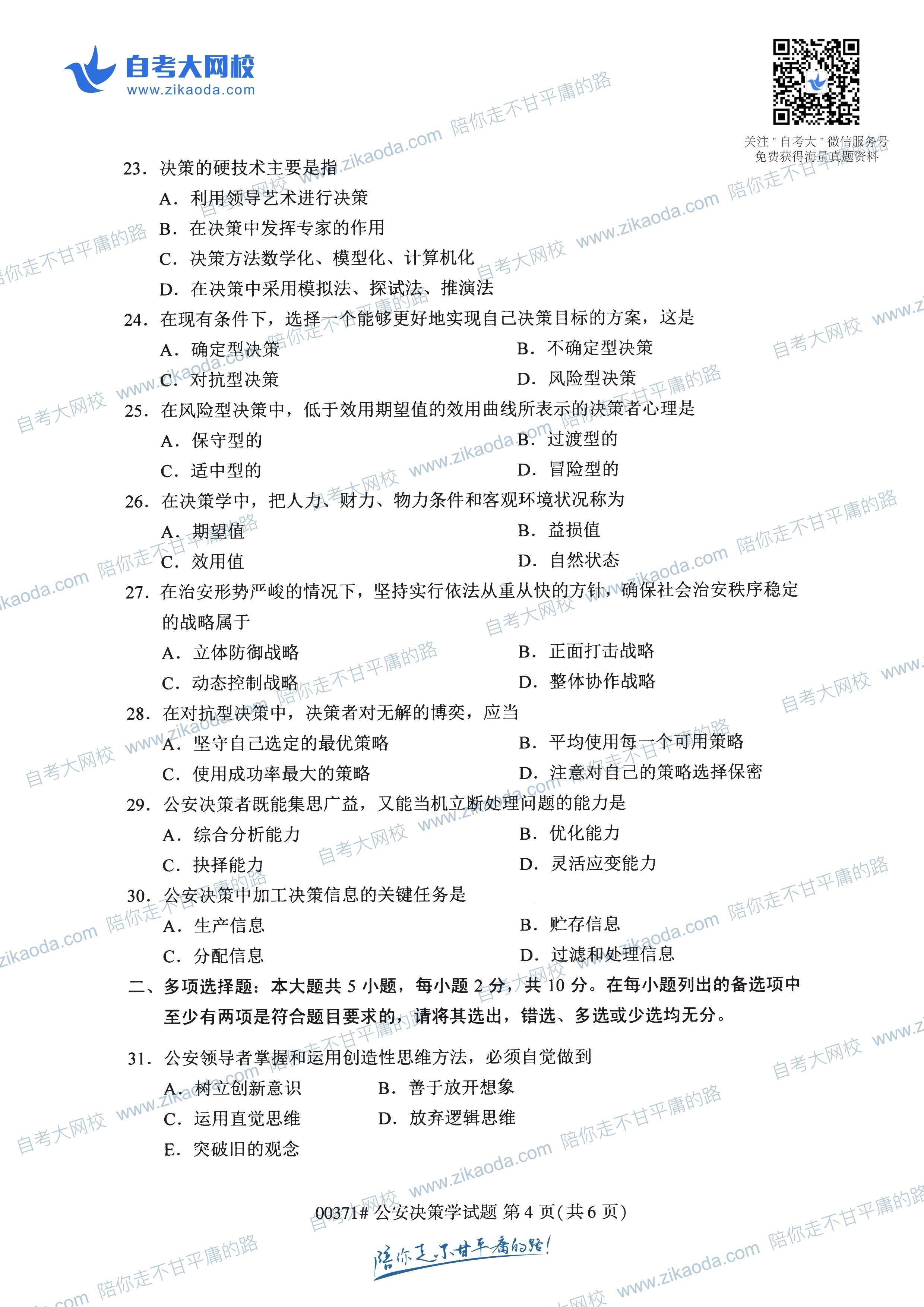 以上是關(guān)于全國2020年8月自考00371公安決策學(xué)真題試卷已公布的相關(guān)信息,請自考生們認(rèn)真查看,如果你想獲取最新的江蘇自考新聞或者江蘇自考問題答疑,可以掃描江蘇自考網(wǎng)公眾號(hào)二維碼,我們會(huì)最第一時(shí)間內(nèi)為你解答。